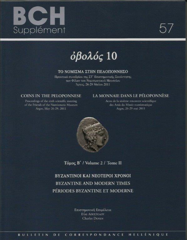 Το Διοικητικό Συμβούλιο των Φίλων του Νομισματικού Μουσείου ευχαρίστως ανακοινώνει την έκδοση των δύο τόμων της περιοδικής σειράς ΟΒΟΛΟΣ με αριθμό 10, η οποία πραγματοποιήθηκε με τη συνεργασία της Γαλλικής Σχολής Αθηνών. Οι τόμοι αποτελούν τη δημοσίευση των Πρακτικών συνεδρίου της ΣΤ΄ Επιστημονικής Συνάντησης των Φίλων του Νομισματικού Μουσείου, με θέμα το Νόμισμα στην Πελοπόννησο, που έλαβε χώρα στο Άργος το 2011.